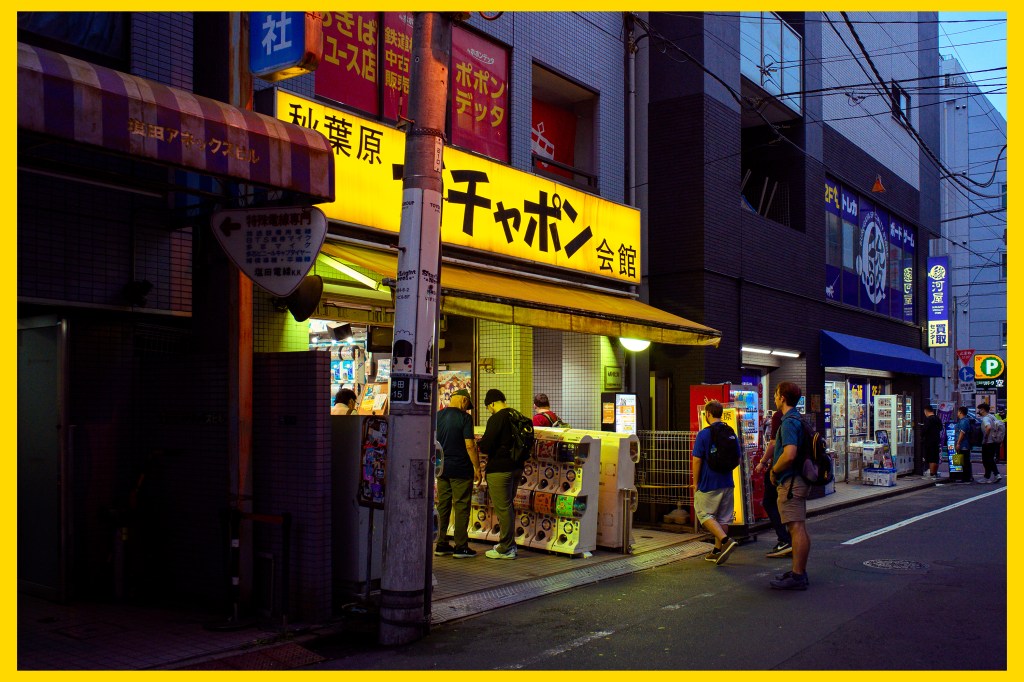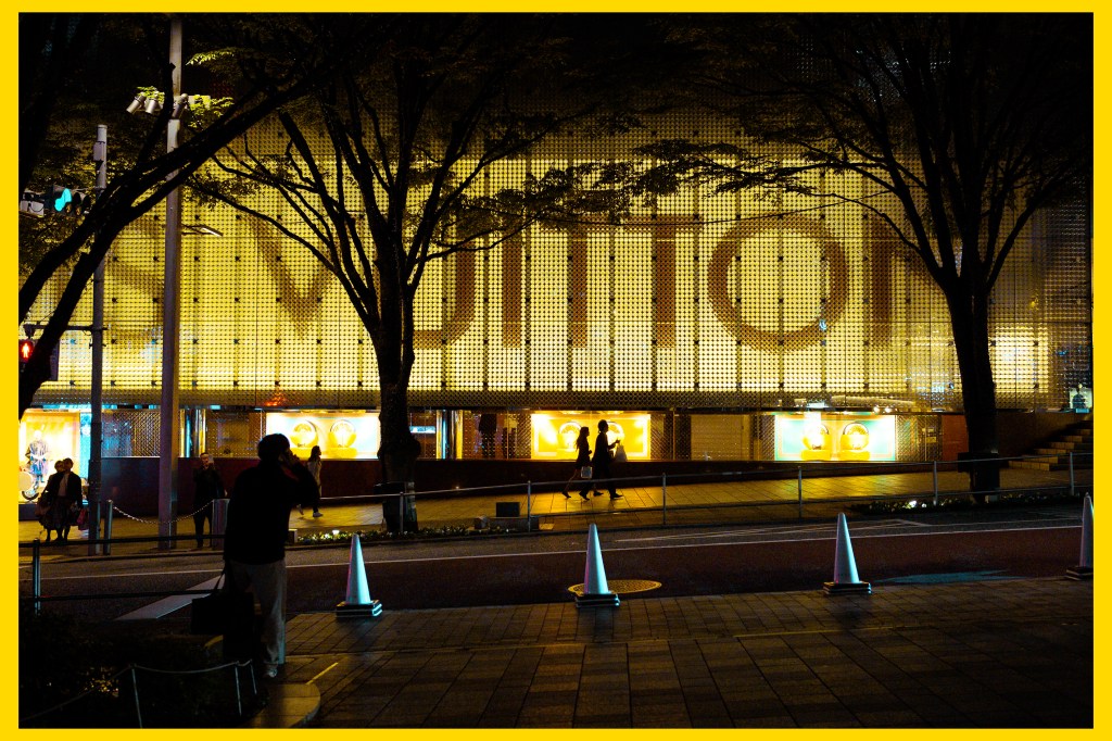 I need to look for more yellow in my photography, as I took the longest to find suitable options from the Tokyo archives. I apparently tend not to shoot much yellow and want that to change. The first image required some fairly heavy color grading to turn a Louis Vuitton storefront from a warmer orange to a cooler yellow. With the second image, the yellow light of the gashapon shop sign pops off the screen. Although the image features a blue hour sky, the eye immediately goes to the lemon yellow.